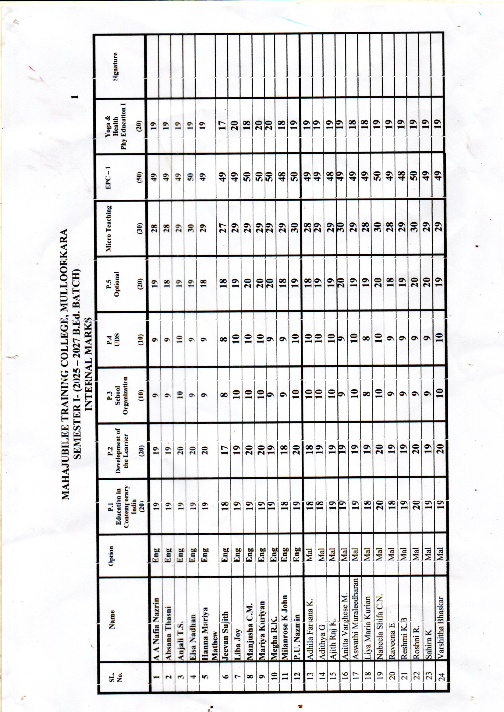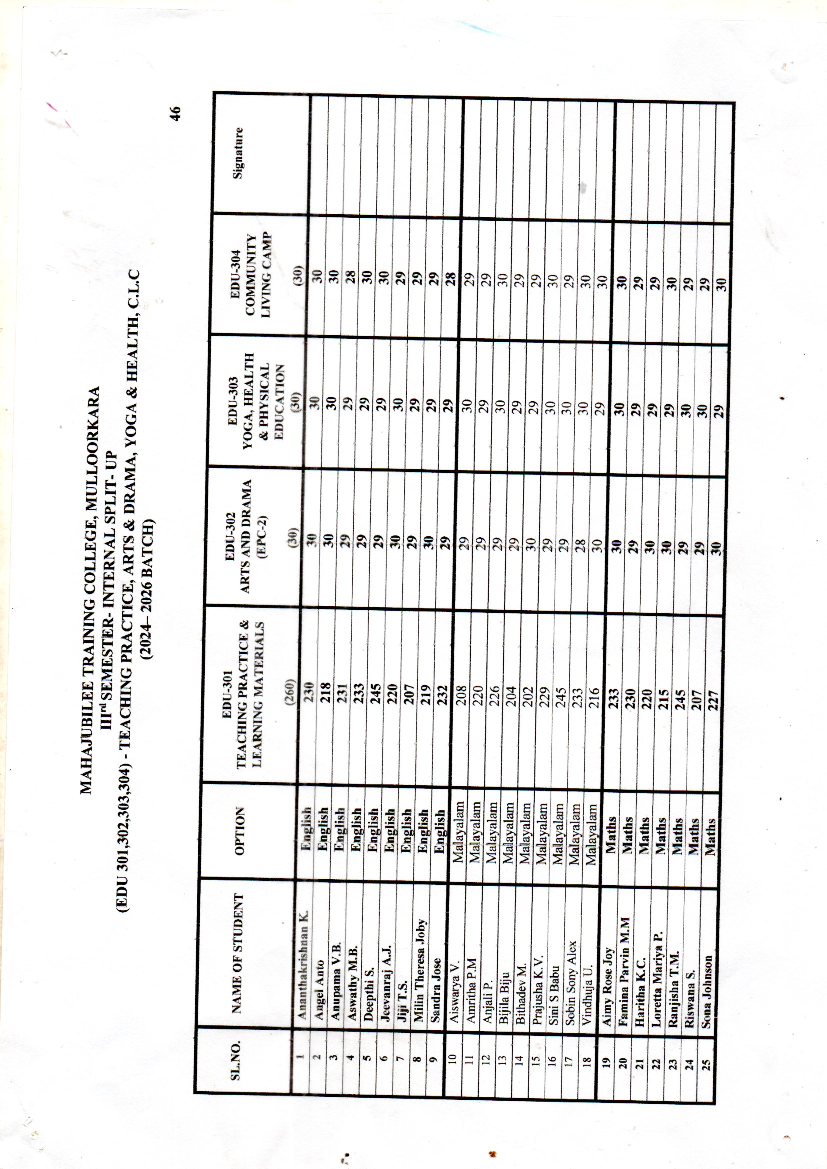 THIRD SEMESTER INTERNAL MARK 2024-2026 BATCH